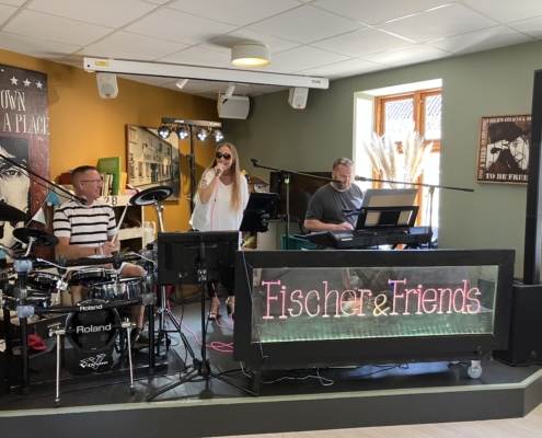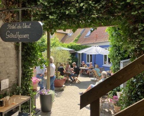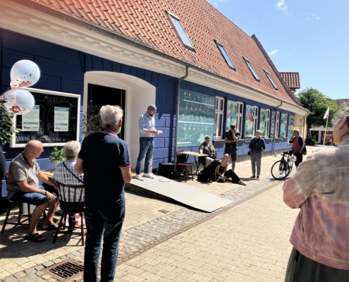 Fredag måtte mange lokale og turister i Nykøbing Sjælland gøre holdt ud for Hotel du Vest og se nærmere på det ny-indviede kunstværk og hele arrangementet omkring ferniseringen. Der var nemlig inviteret til fejring af et nyt, flot maleri, skabt af kunstner og grafiker, Anders Schrøder. Hotel du Vests faste team bestående af vores kok, beskæftigelsesmedarbejdere og borgere sørgede for, at der var lækker mad og kolde drikkevarer til alle besøgende, og livebandet Fischer & Friends spillede op til dans og sørgede for at stemningen forblev varm.